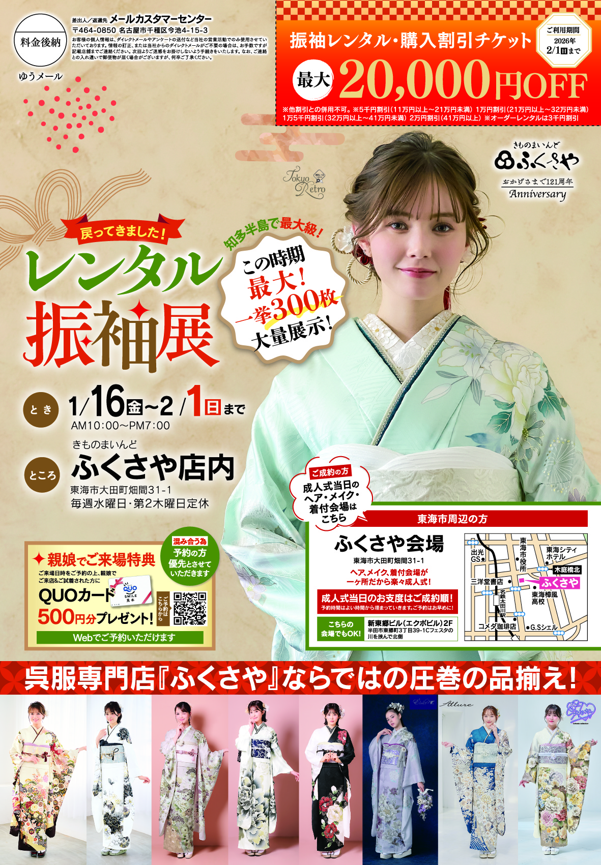 成人式から戻ってきましたレンタル振袖!この時期最大一挙300枚大量展示‼ 1月16日よりスタート